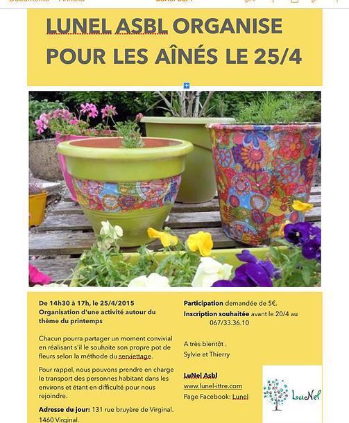 Chacun pourra partager un moment convivial en réalisant s'il le souhaite son propre pot de fleurs selon les méthode de serviettage.